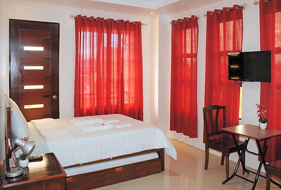 This room features a microwave, refrigerator, and a flat-screen cable TV.
