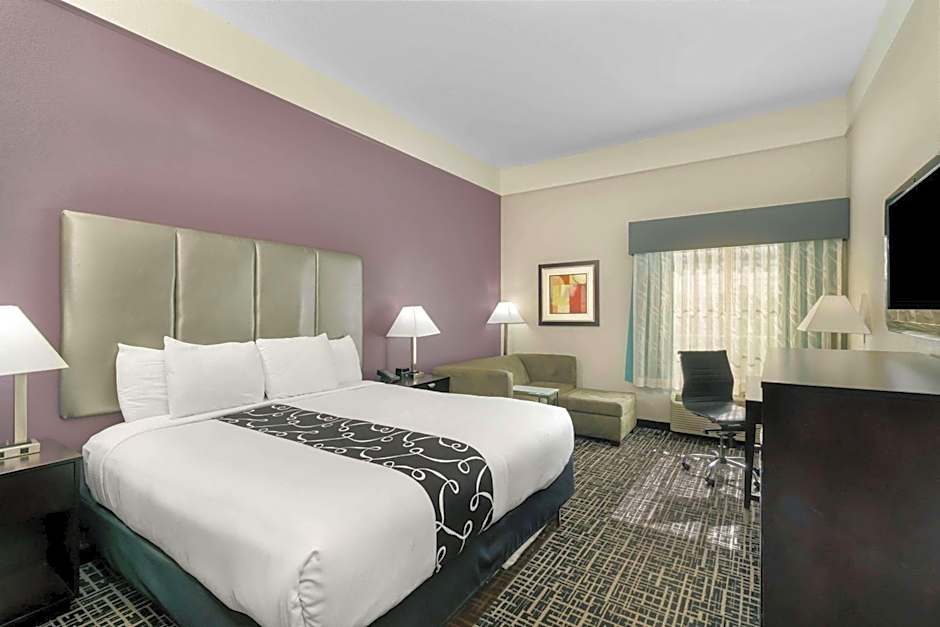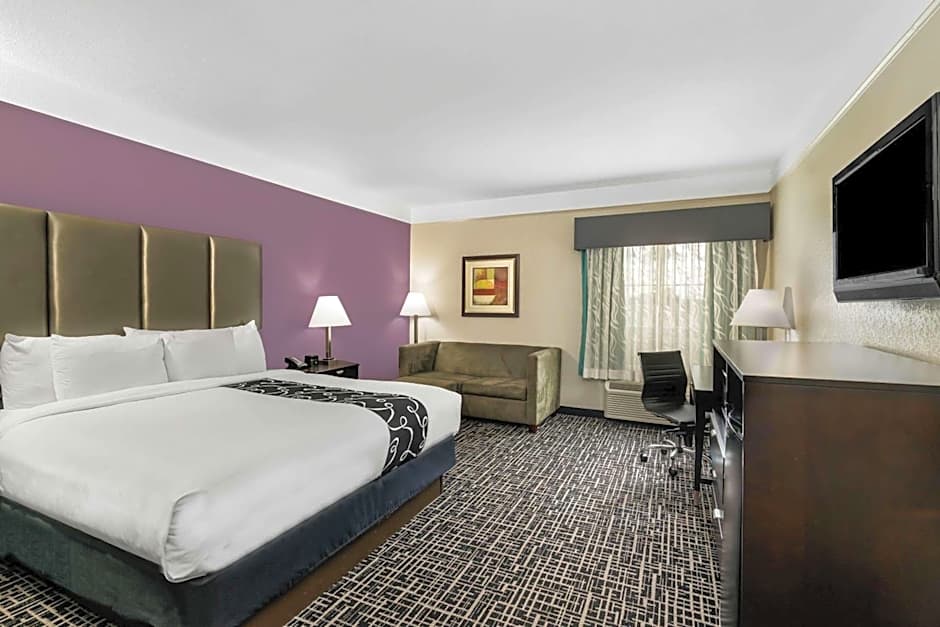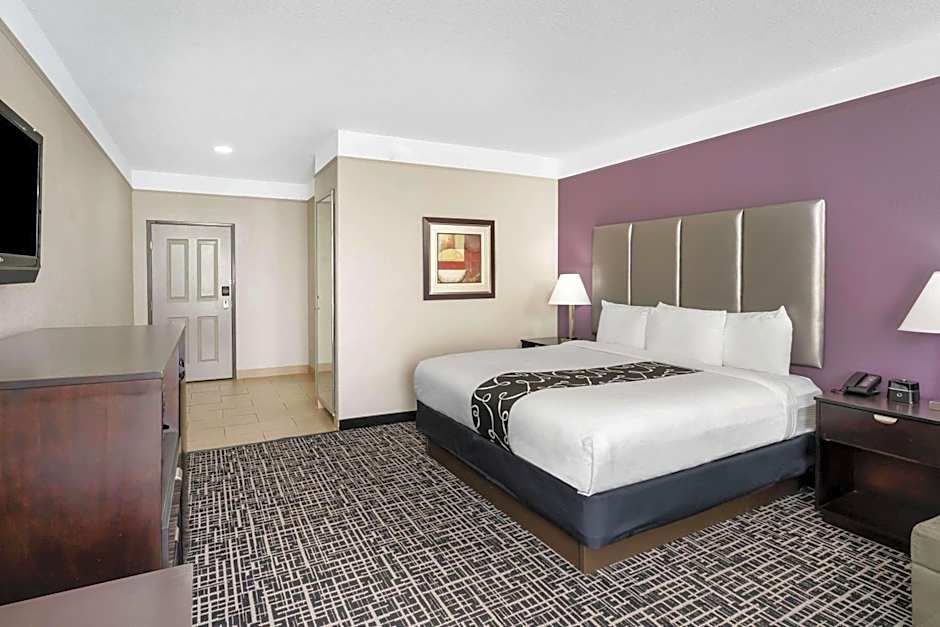 This room features a microwave, refrigerator, and a flat-screen cable TV.