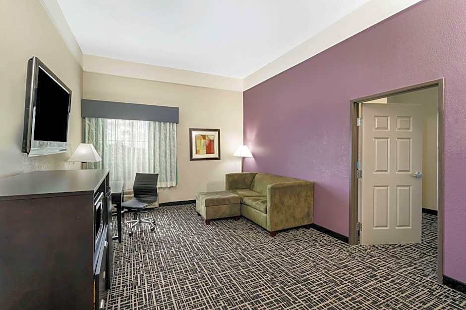 The spacious suite offers air conditioning, a tea and coffee maker, as well as a private bathroom featuring a bath and a shower. The suite features carpeted floors, a seating area with a flat-screen TV with cable channels, a dressing room, a high chair for children, as well as heating.
